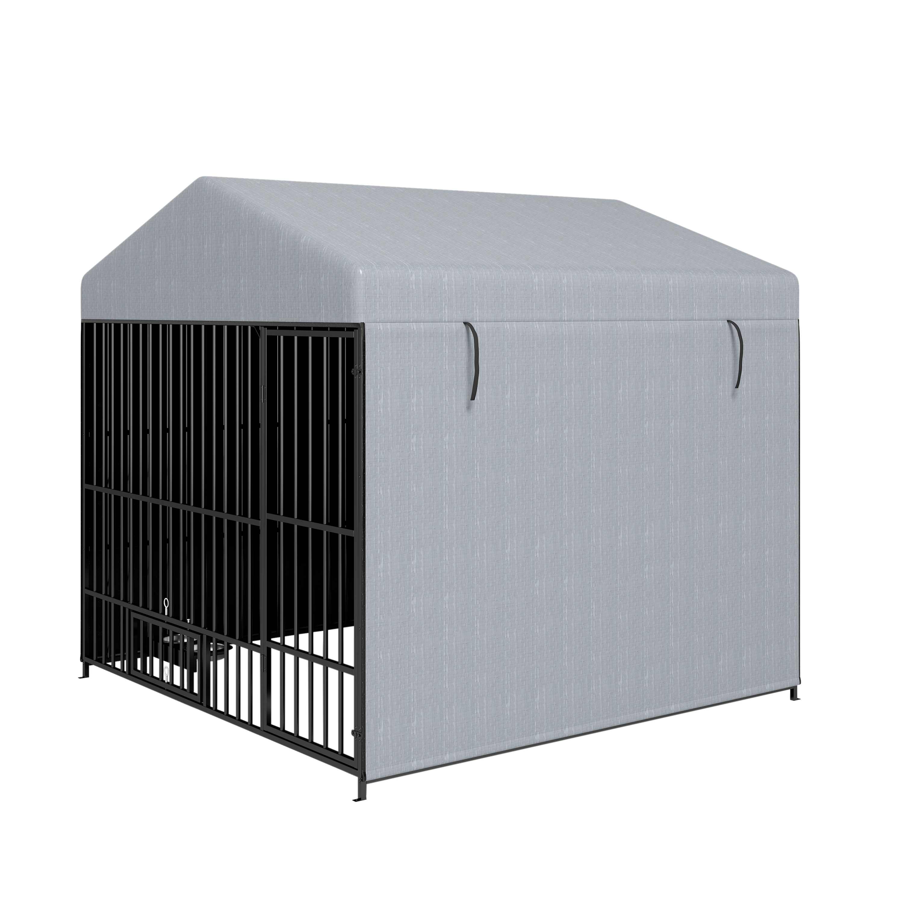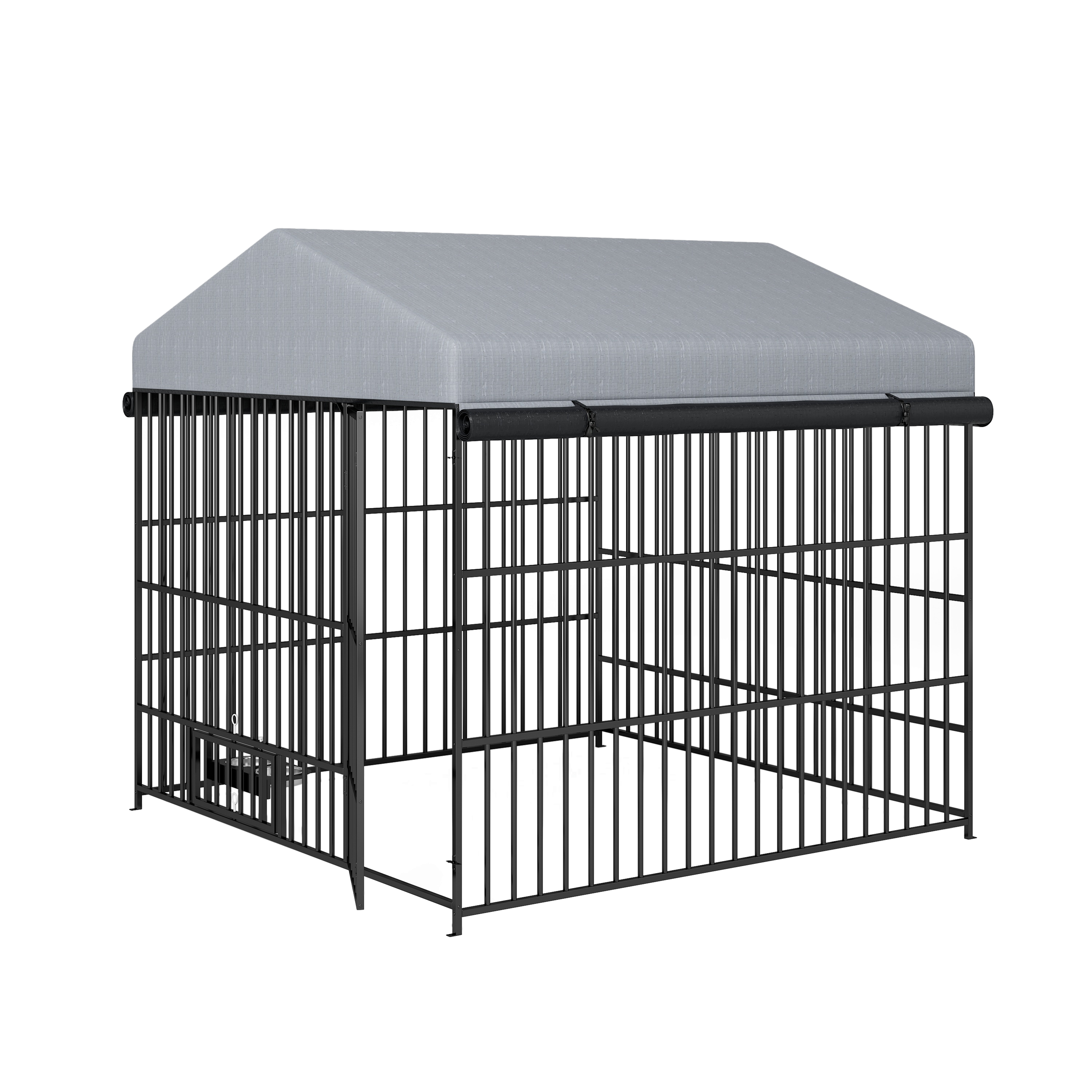 - [Waterproof and Weatherproof]The included top canopy can cover the top and three sides, secured by zippers and straps, and is waterproof and UV-resistant. It has a coating that prevents the tarp from cracking, peeling, or fading over time. Peaked design prevents water accumulation. The removable design and durability provide your pet with complete protection from sun, rain, snow and debris.