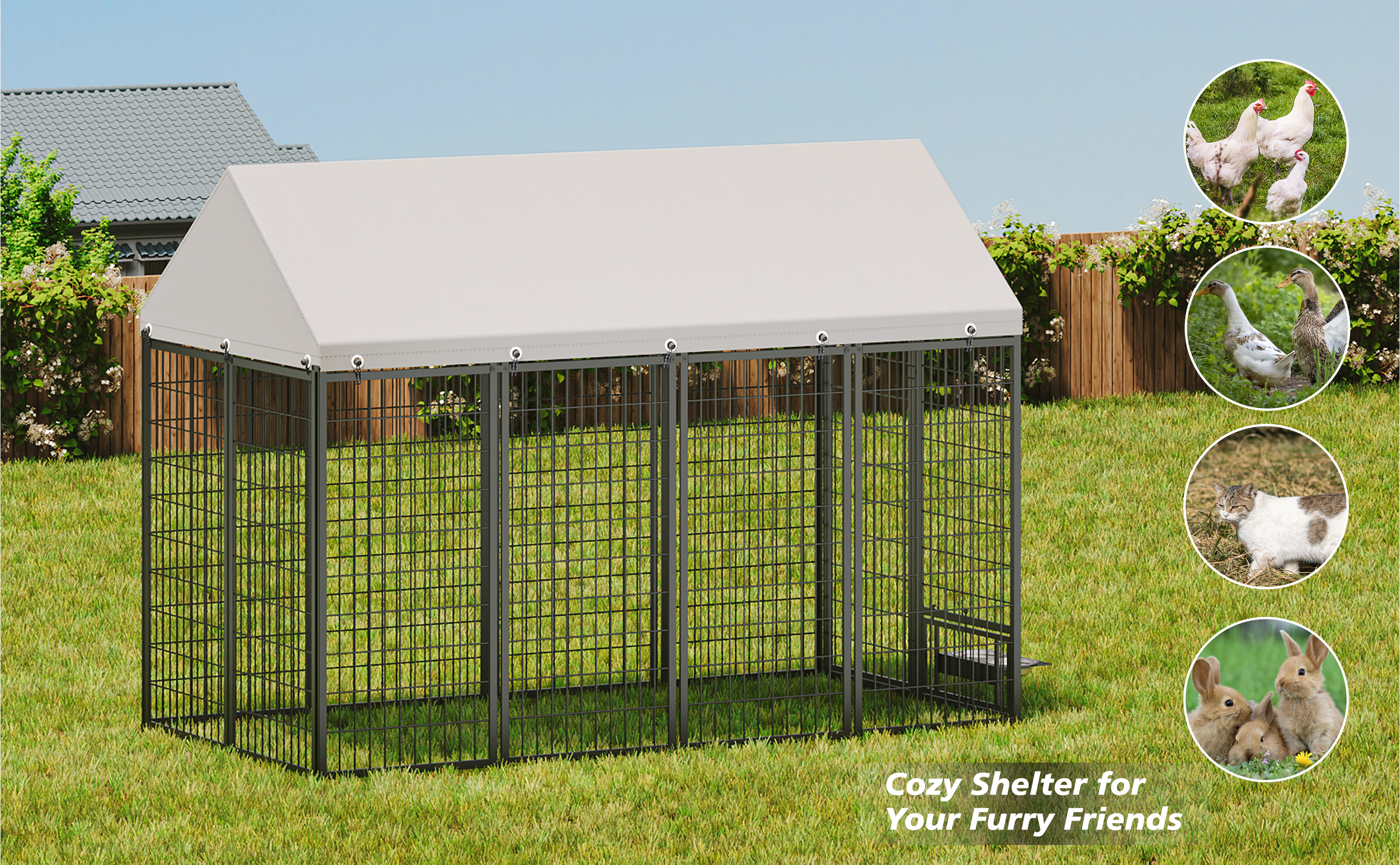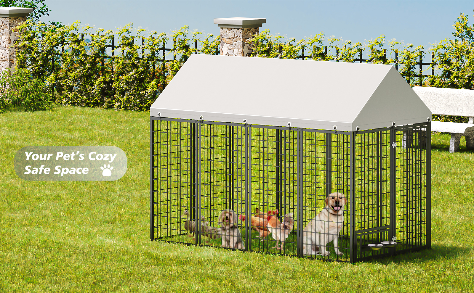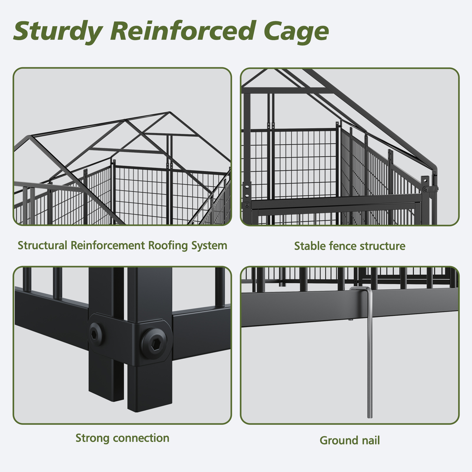 Large Dog Kennel Outdoor Pet Pens Dogs Run Enclosure Animal Hutch Metal Coop Fence With Roof Cover. 7.94'L X 4.13'W X 5.95'H.