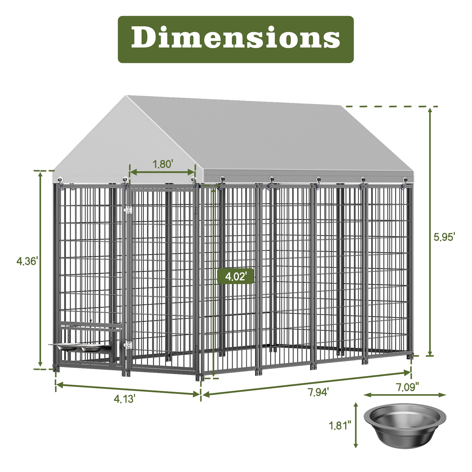 Product Name:Large Dog Kennel Outdoor Pet Pens Dogs Run Enclosure Animal Hutch Metal Coop Fence with Roof Cover. 7.94'L x 4.13'W x 5.95'H.