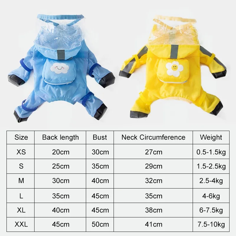 Pet Puppy Dog Raincoat Rain Jacket Coverage 4 Legs Full Body Protection Waterproof Rainboot Small Dogs Pet Teddy Raining Coat